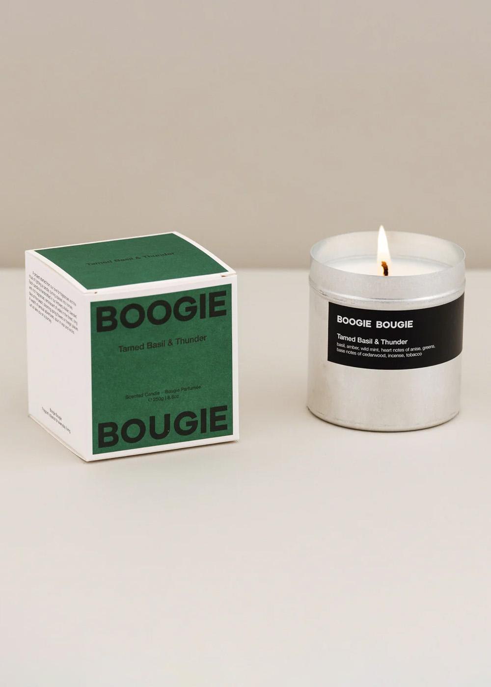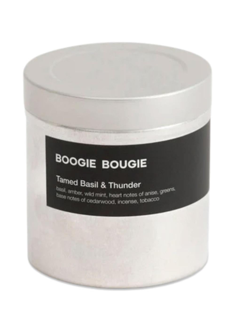 Tamed Basil & Thunder er et håndstøbt duftlys fra Antwerpen fremstillet i en naturlig voksblanding med en brændetid på ca. 60 timer. Duften har en frisk og grøn karakter med noter af basilikum, mynte, anis og tomatblade, kombineret med varme trænoter som cedertræ og sandeltræ samt en blød bund af tobak og tørret hø. Et velafbalanceret duftlys fra et brand, der fokuserer på enkle, moderne og stemningsskabende dufte til hjemmet.