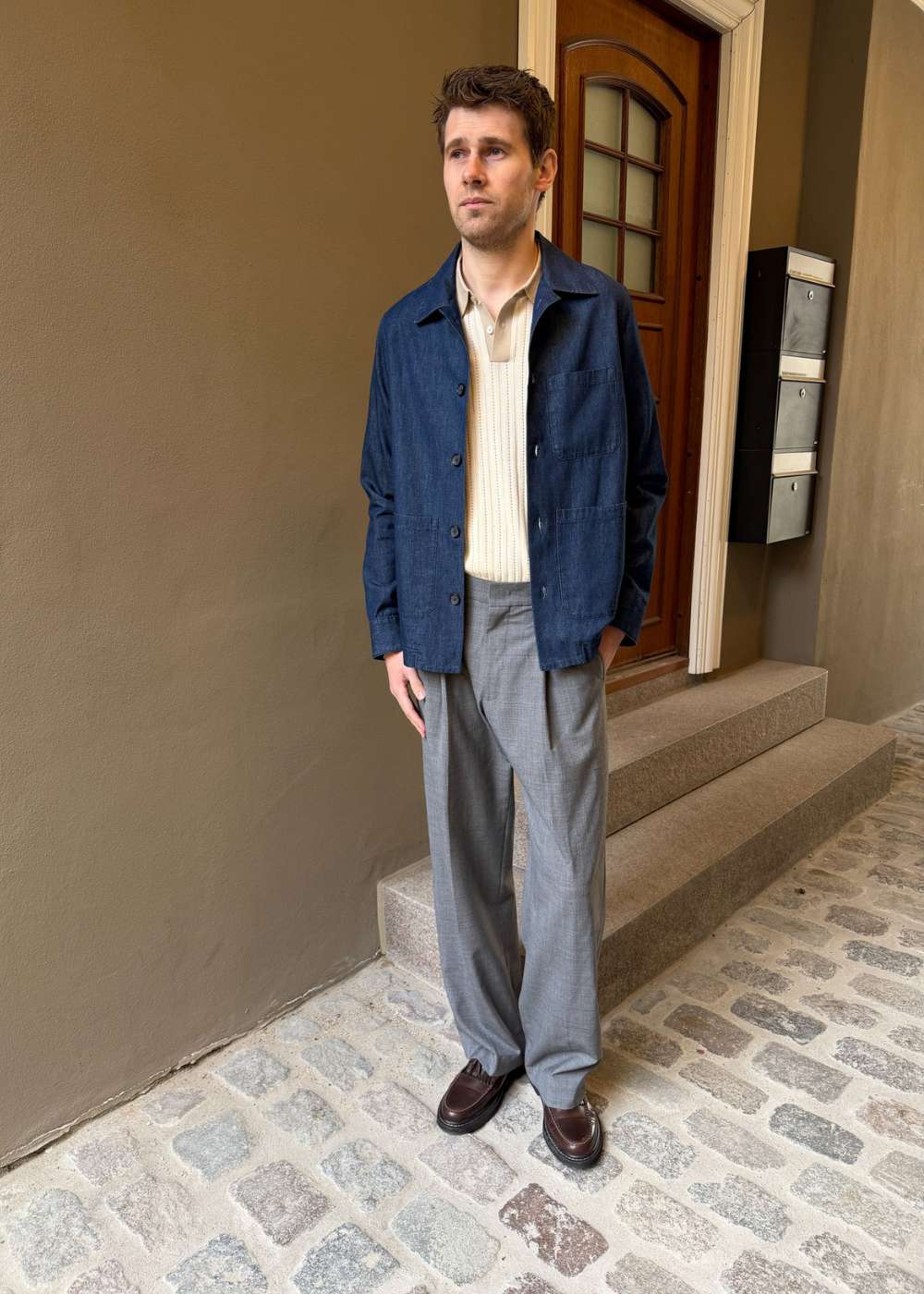 Denne Denim Overshirt fra Tintoria er en klassisk overgangsjakke i en mørkeblå denimfarve. Skjorten har en spidskrave, lange ærmer og er udstyret med både brystlomme og dobbeltlommer til hverdagsbrug.