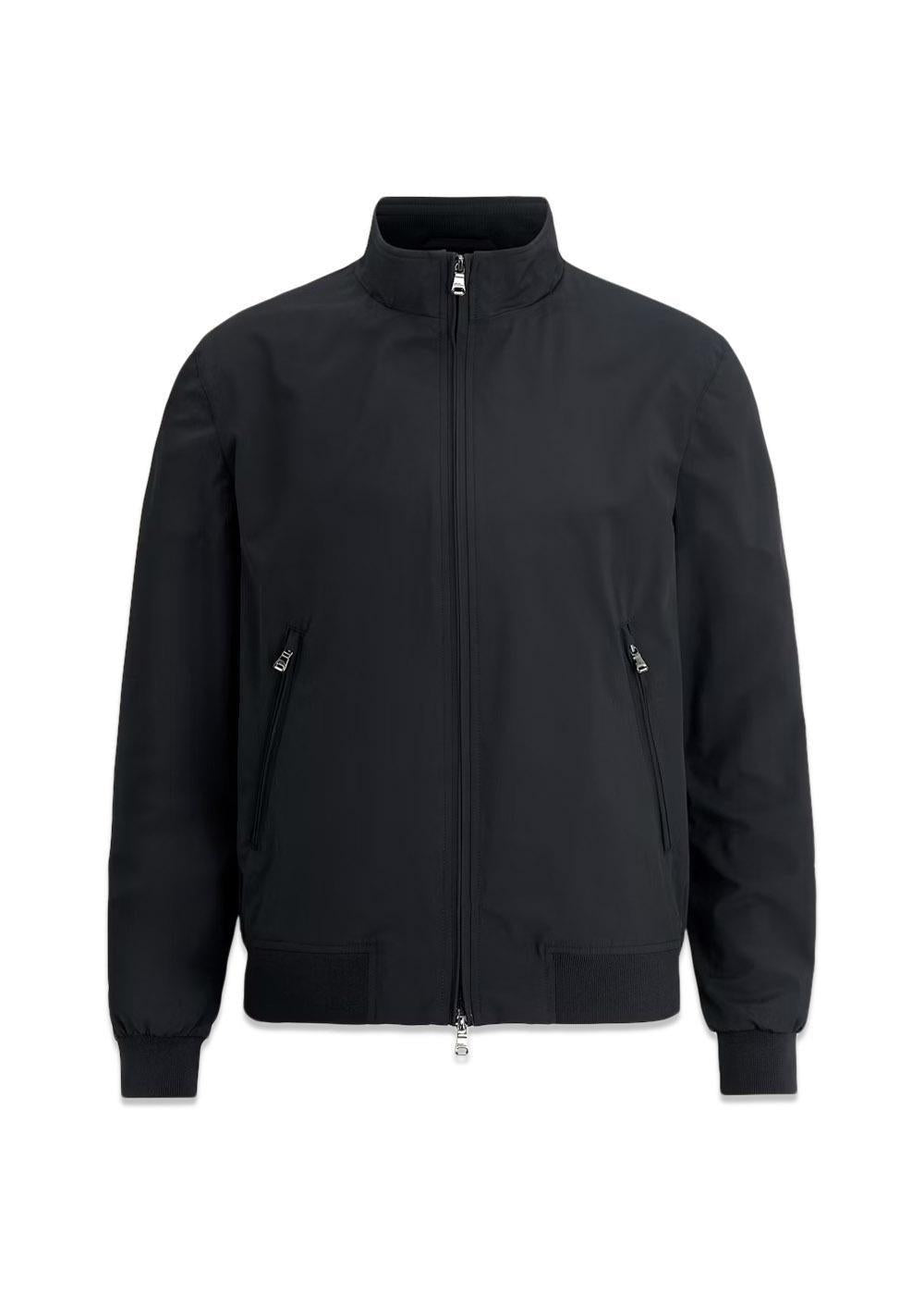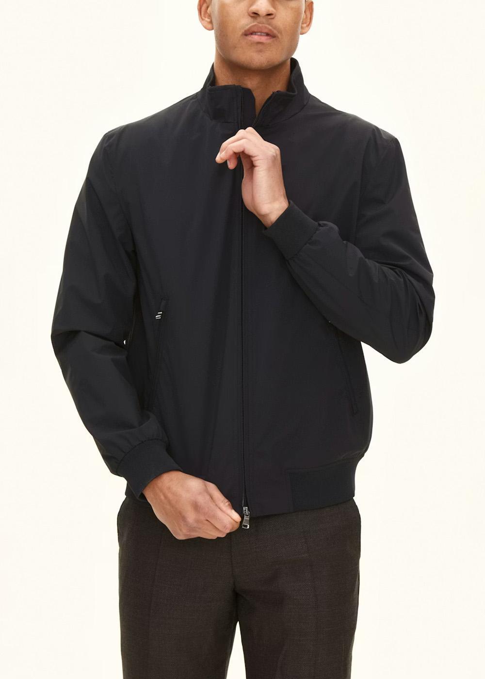 Denne bomberjakke fra Oscar Jacobson er i en navy blå farve med et klassisk og enkelt udtryk. Jakken har en høj hals, lange ærmer og er velegnet til både hverdag og business.