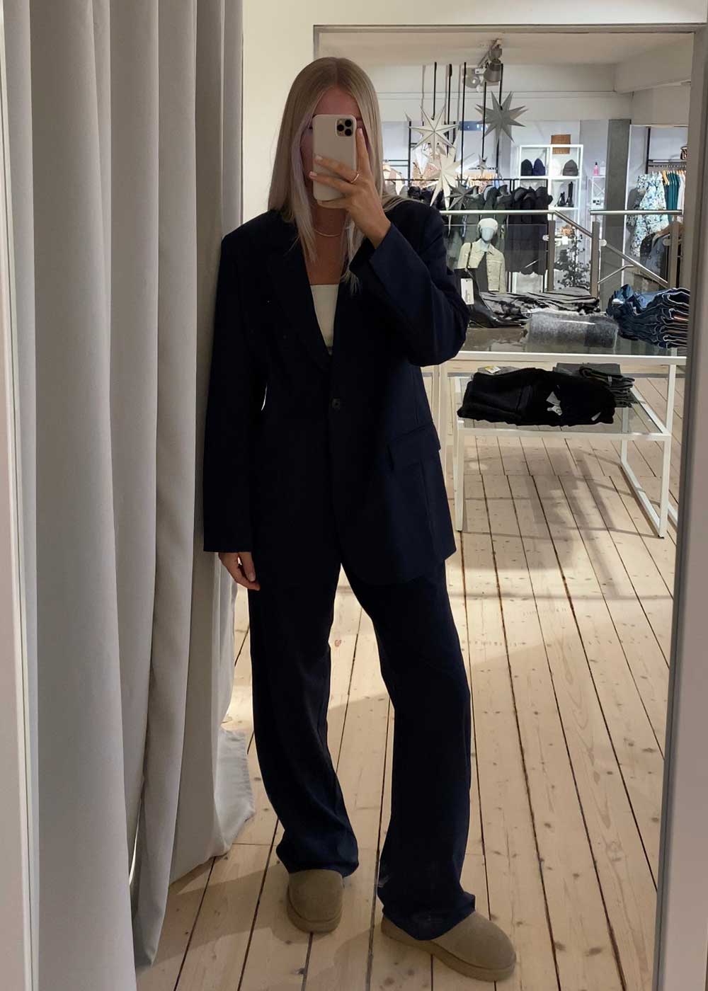 Modellen er 167 cm høj og bruger en str. XS. Bukserne kan nemt lægges op, hvis det skulle være nødvendigt.