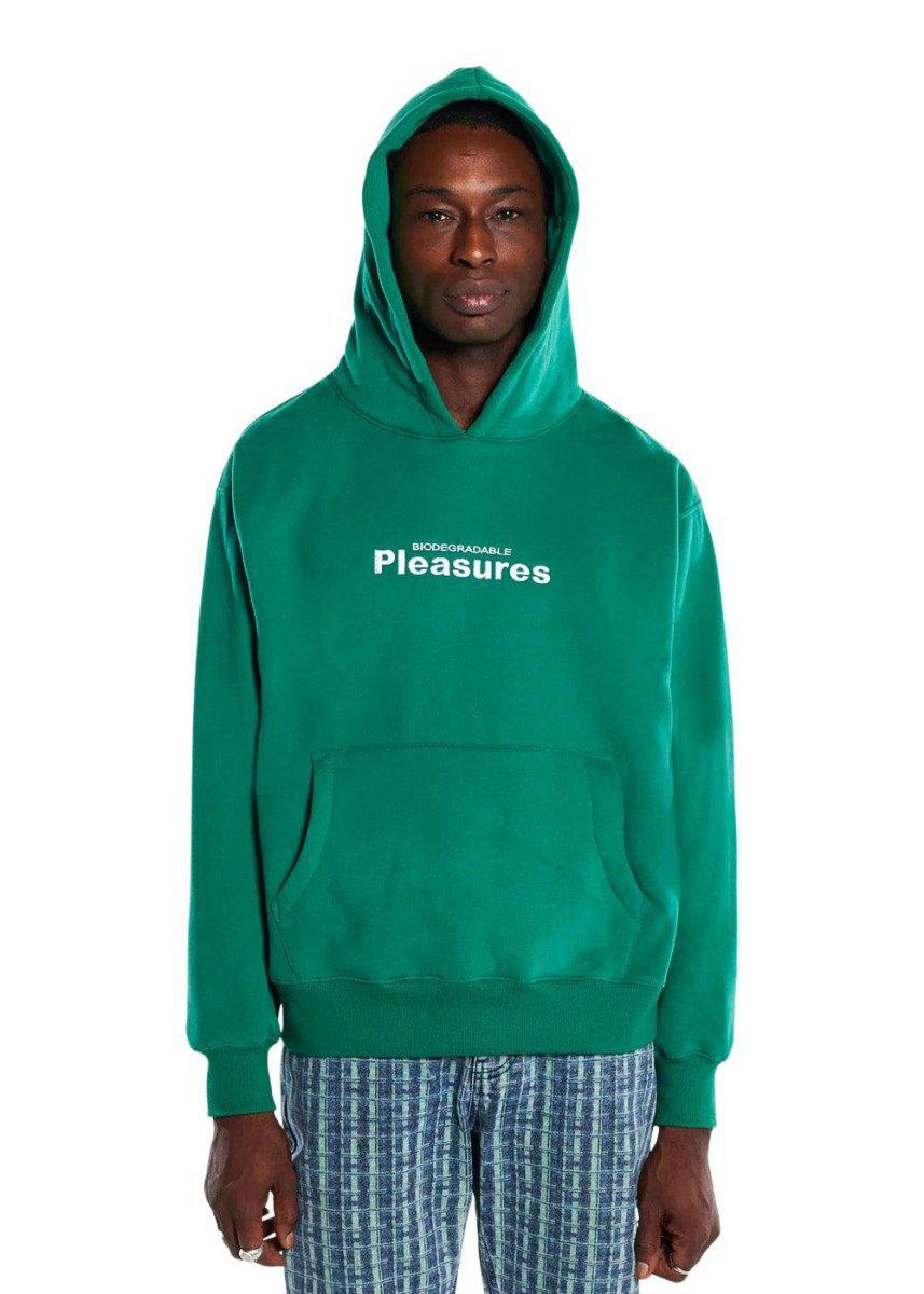 En hoodie er super cool og nem at style til hverdag. En hoodie er mere sporty end en almindelig sweatshirt, men kan sagtens bruges til et par pænere bukser for at gøre dit outfit mere personligt og afslappet. Brug clean up hoodie - Green fra Pleasures til et par jeans eller et par suitbukser for at dresse dem lidt ned.