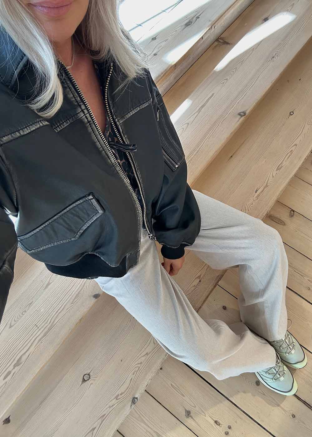 Denne bomberjakke i lammelæder fuldender dit look med sin boxy pasform og retro-stil. Den er fuldt foret og har praktiske lommer, hvilket gør den både stilfuld og funktionel til enhver anledning.