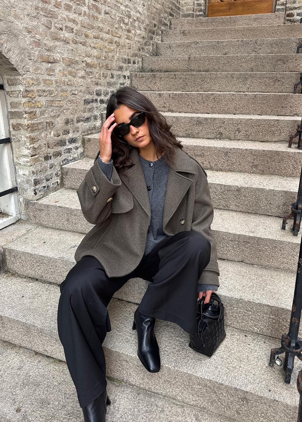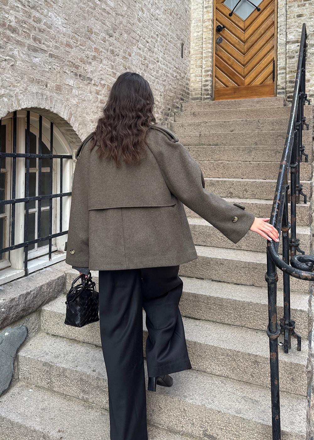 Denne jakke i en dyb brun nuance kombinerer en moderne silhuet med tidløse detaljer. Den er et oplagt valg, der tilføjer et stilfuldt og urbant præg til enhver garderobe.
